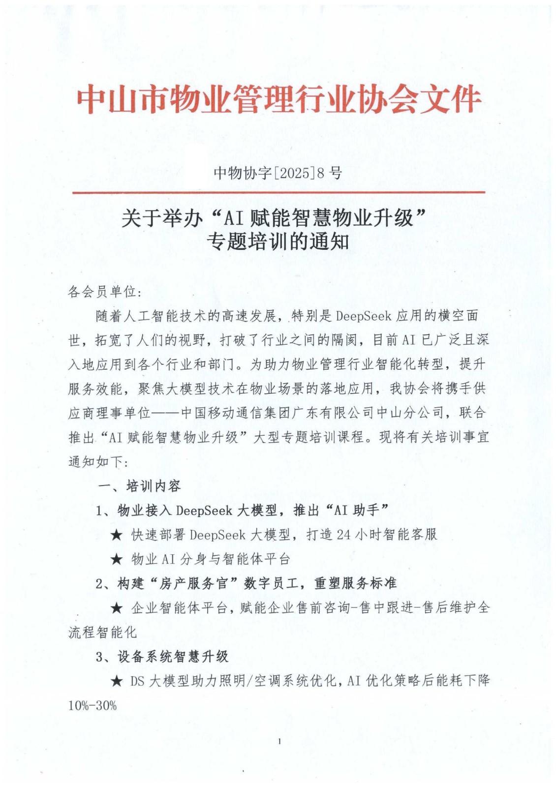 关于举办“AI赋能智慧物业升级”专题培训的通知
